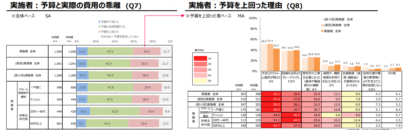 - 平均リフォーム費用434万円と費用オーバー率29.3%