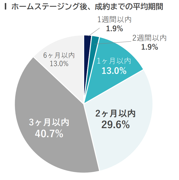 - ホームステージング後は87.1%が3 か月以内に成約