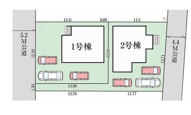 | 土地面積 | 公170.24㎡(51.49坪) | 接道 | 東側(公道)幅 約4.4m 間口 約13.70m |