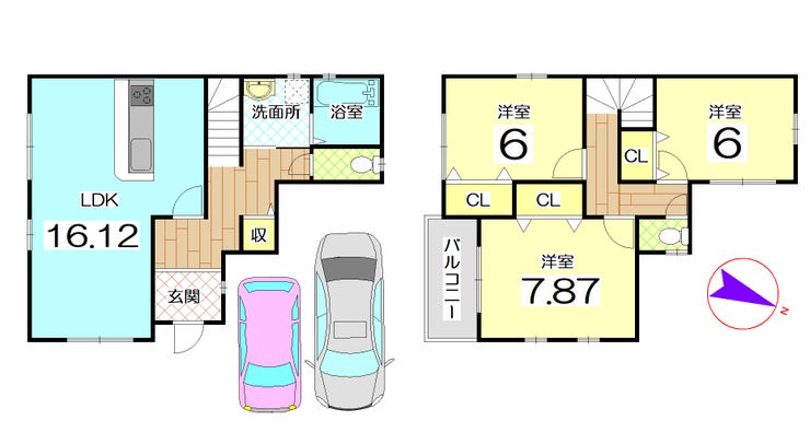 | 建物面積 | 89.9㎡ | 駐車場 | あり 普通:1台 軽:1台 |