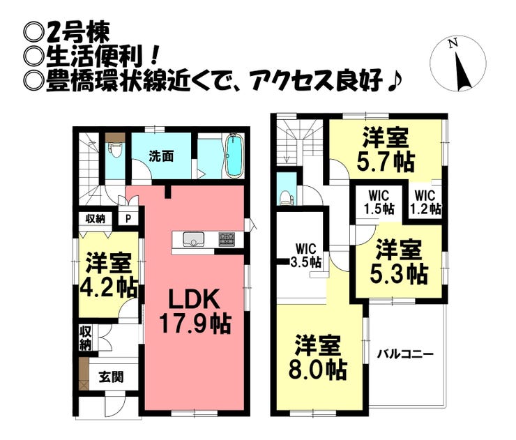 | 備考 | ◎生活便利! ◎豊橋環状線近くで、アクセス良好♪ ※設計性能評価取得 ・耐震等級3級 ・断熱等性能等級5級 ・劣化対策等級3級 ・維持管理対策等級3級 ・一次エネルギー消費量等級6級 ※子育てエコホーム支援事業 対象物件(予算が無くなり次第終了) |
