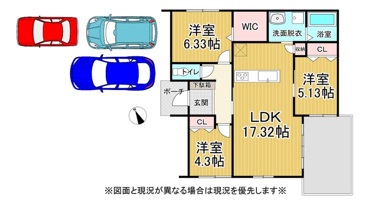 | 建物面積 | 77.75㎡ | 駐車場 | あり 普通:2台 軽:1台 |