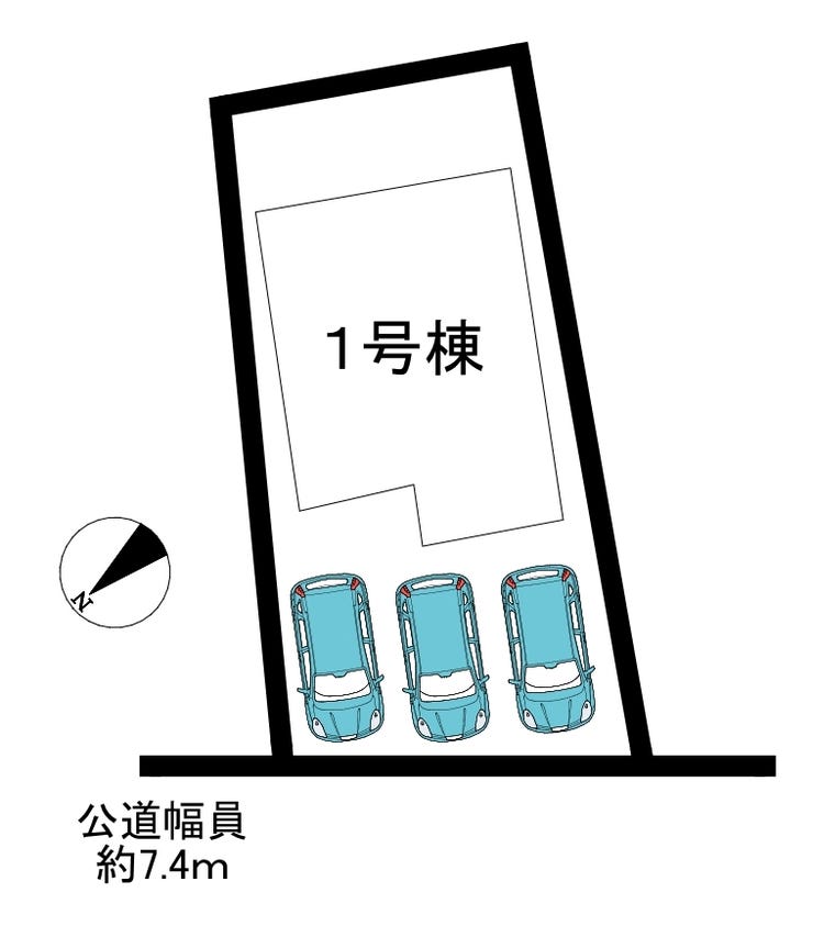 | 土地面積 | 実146.49㎡(44.31坪) | 接道 | 北西側(公道)幅 約7.4m |