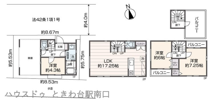 | 土地面積 | 公48.49㎡(14.66坪) | 接道 | 北側(私道)幅 約4.0m 南側(公道)幅 約7.5m |