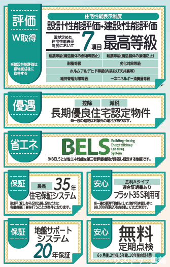 | 備考 | ◆2026年2月上旬完成予定 ◆網戸・照明・カーテン・カーテンレールはオプション有料 ◆長期優良住宅認定物件 ◆フラット35S利用可(適合証明書あり)事務手数料として物件引渡し時に88,000円必要 |