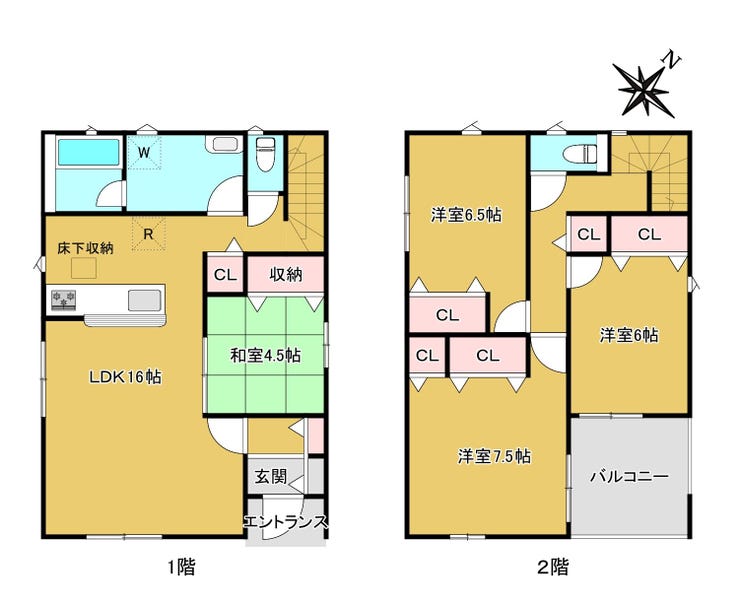 2台分の駐車スペースでご夫婦でお車をお持ちの方にもおすすめ。ガーデンイングを楽しめる前庭も確保されております。16帖の広々LDKでご家族の団らんが深まります。2階の各居室は6帖以上で寝室、書斎、趣味の部屋として家族の成長やライフスタイルに合わせ、様々な使い方ができる快適な空間をご用意しました。