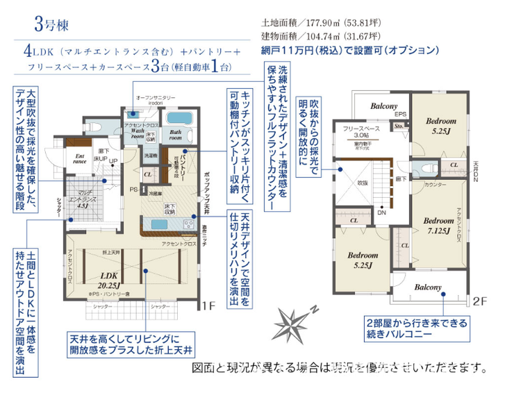 | 備考 | 太陽光発電システムについてはリース契約になります。リース契約期間は10年間、毎月利用料金は3号棟:11561円(税込) | ||