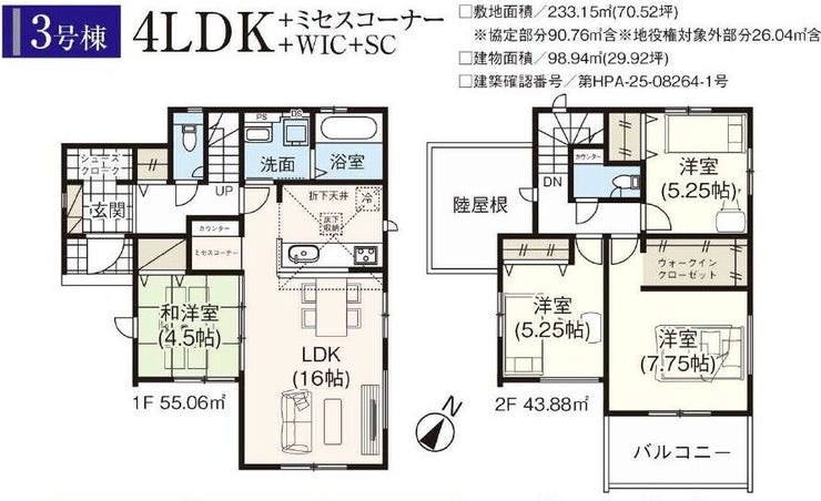 | 築年月 | 2025年(令和7年)11月築 | 建築確認 | 第HPA-25-08264-1号 |