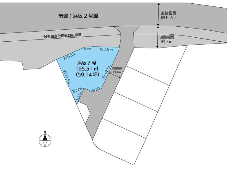 | 土地面積 | 195.51㎡(59.14坪) | 接道 | 東側幅 約4.0m 間口 約10.10m 北側幅 約5.9m 間口 約20.10m |