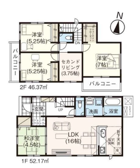| 備考 | ・長期優良住宅 ・太陽光パネル(各種諸条件有) ・セカンドリビング3.75帖・ウォークインクローゼット・シュークローク ・契約条件として網戸取付工事(165,000円税込)の注文がございます。 ・フラット利用の場合、適合証明書発行費用(93,500円税込)を必要です。 |