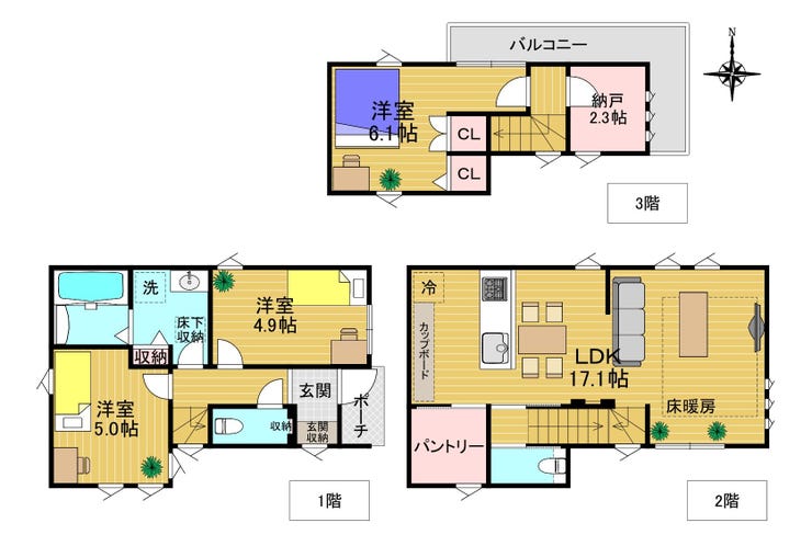 - 3面採光