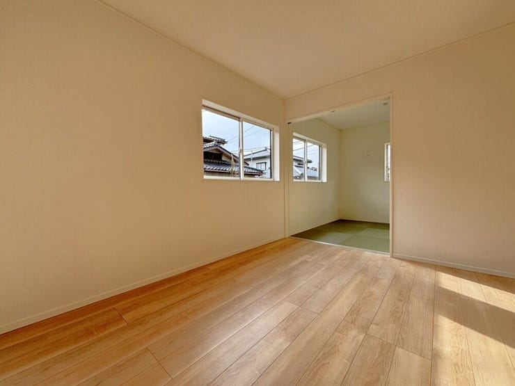 1階に和室がある4LDK!古風な和室ではなく、今っぽいシンプルな洋和室なので家具もマッチしやすい◎お子様の遊び場、お昼寝スペース、趣味に集中できるお部屋です(^^♪