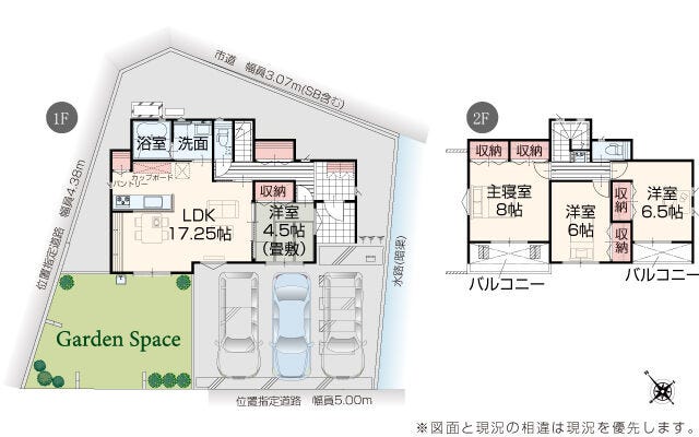 3号棟は、17.25帖のゆとりあるLDKと、リビングと一体的に使える4.5帖の和室が魅力の4LDKです。客間や子どもの遊び場など用途が広く、日常の使い勝手が良い間取りとなっています。2階には8帖の主寝室をはじめ、6帖・6.5帖の洋室もゆとりがあり、家族それぞれが快適に過ごせる空間を確保。収納スペースも随所に備え、スッキリ暮らせる工夫が整っています。住み心地を重視したおすすめの一邸です。
