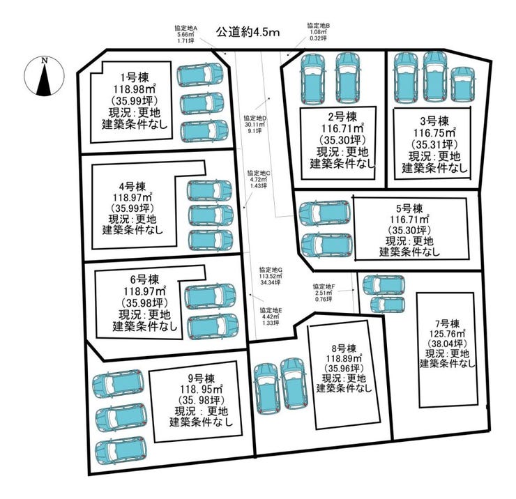 | 分譲情報 | 【販売戸数】:9戸 【土地面積】:116.71㎡ ~128.89㎡ |