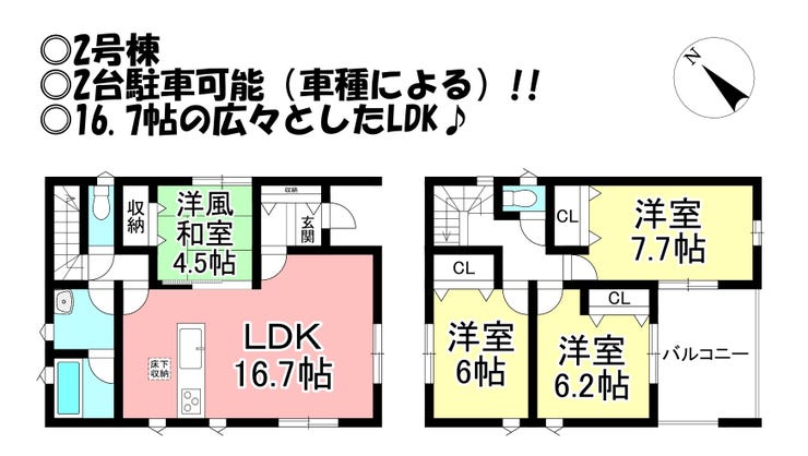 ◎2台駐車可能(車種による)!
