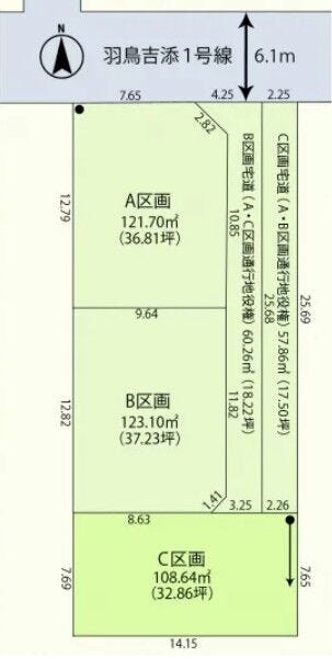 | 土地面積 | 121.7㎡(36.81坪) | 接道 | 北側(公道)幅 約6.1m 間口 約7.65m |