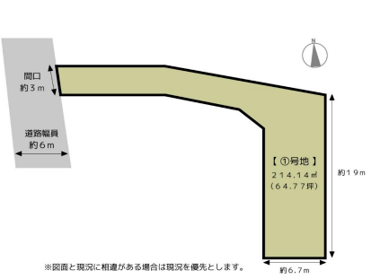 | 土地面積 | 公136.46㎡(41.27坪) | 接道 | 西側(公道)幅 約6.0m 間口 約3.00m |