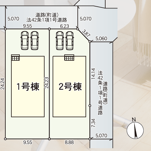 | 土地面積 | 212.28㎡(64.21坪) | 接道 | 北側(公道)幅 約5.1m 間口 約6.23m 東側(公道)幅 約5.1m 間口 約21.48m |