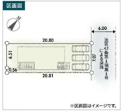 | 土地面積 | 公147.28㎡(44.55坪) | 接道 | 北東側(公道)幅 約6.0m 間口 約7.07m |