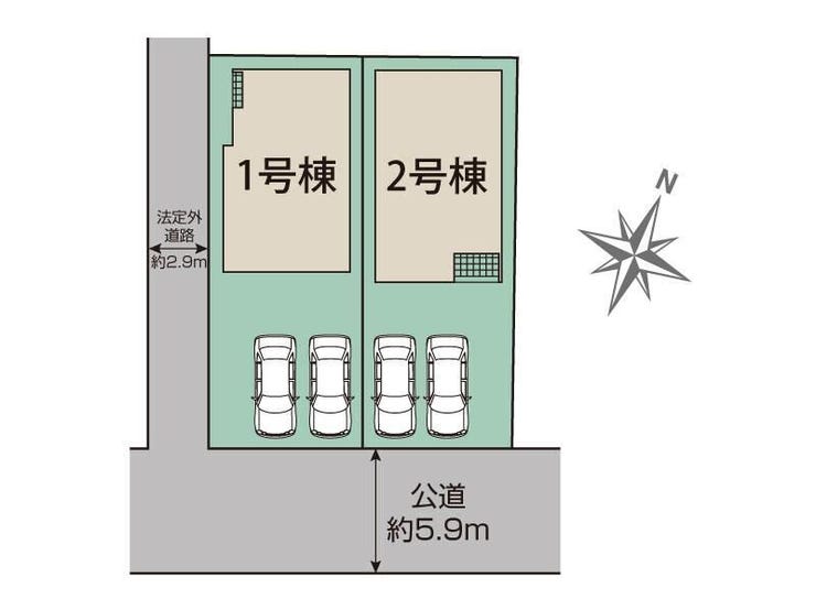 | 土地面積 | 136.17㎡(41.19坪) | 接道 | 南側(公道)幅 約5.9m 西側幅 約2.9m |
