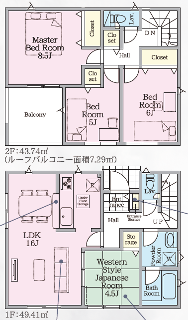| 建物面積 | 93.15㎡ | 駐車場 | あり 普通:2台 軽:1台 |
