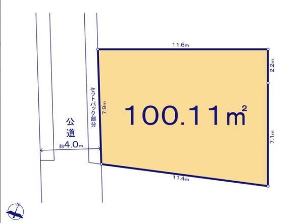 | 土地面積 | 実100.11㎡(30.28坪) | 接道 | 西側(公道)幅 約4.0m |