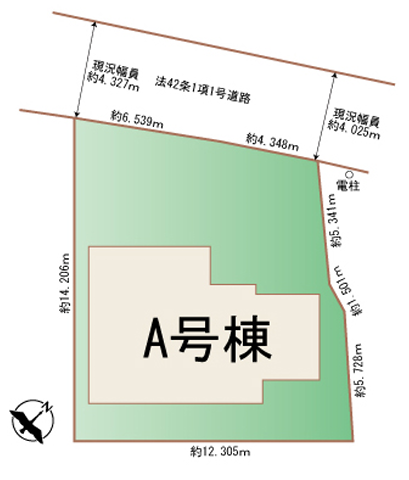 | 土地面積 | 153.74㎡(46.50坪) | 接道 | 北西側(公道)幅 約4.3m |