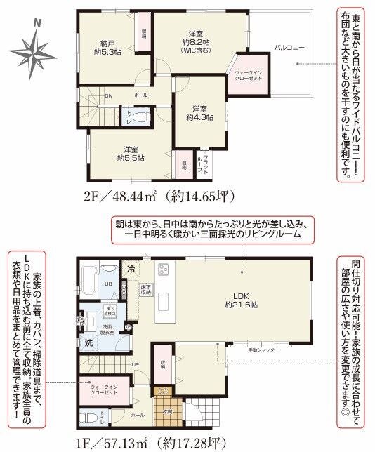 3LDK+Sの木造2階建て♪(LDK約21.6帖・2階3部屋)