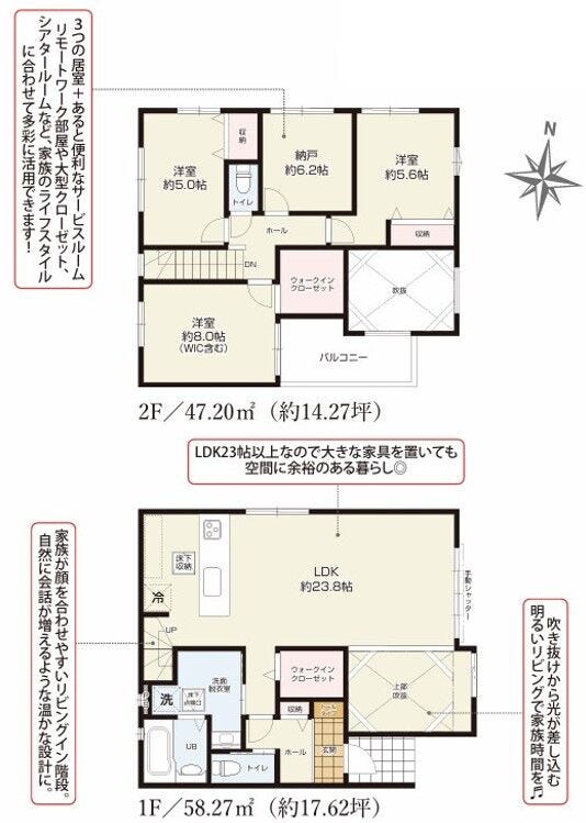 3LDK+Sの木造2階建て♪(LDK約23.8帖・2階3部屋)