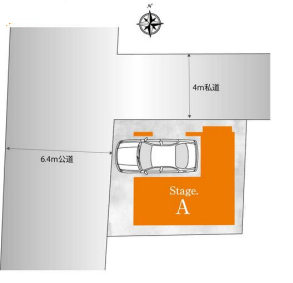 | 土地面積 | 実57.76㎡(17.47坪) | 接道 | 西側(公道)幅 約6.4m 北側(私道)幅 約4.0m |