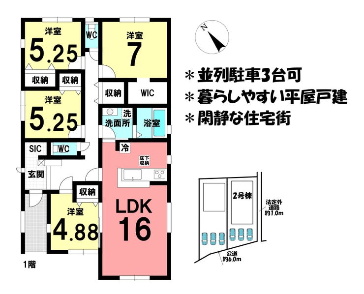 ■並列駐車3台可■過ごしやすい平屋戸建■全室フローリング■住宅性能評価取得■閑静な住宅街■整形地