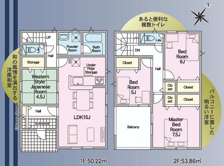 | 分譲情報 | 【販売戸数】:2戸 【価格】:3,380万円 ~3,580万円 【土地面積】:163.78㎡ ~165.51㎡ |