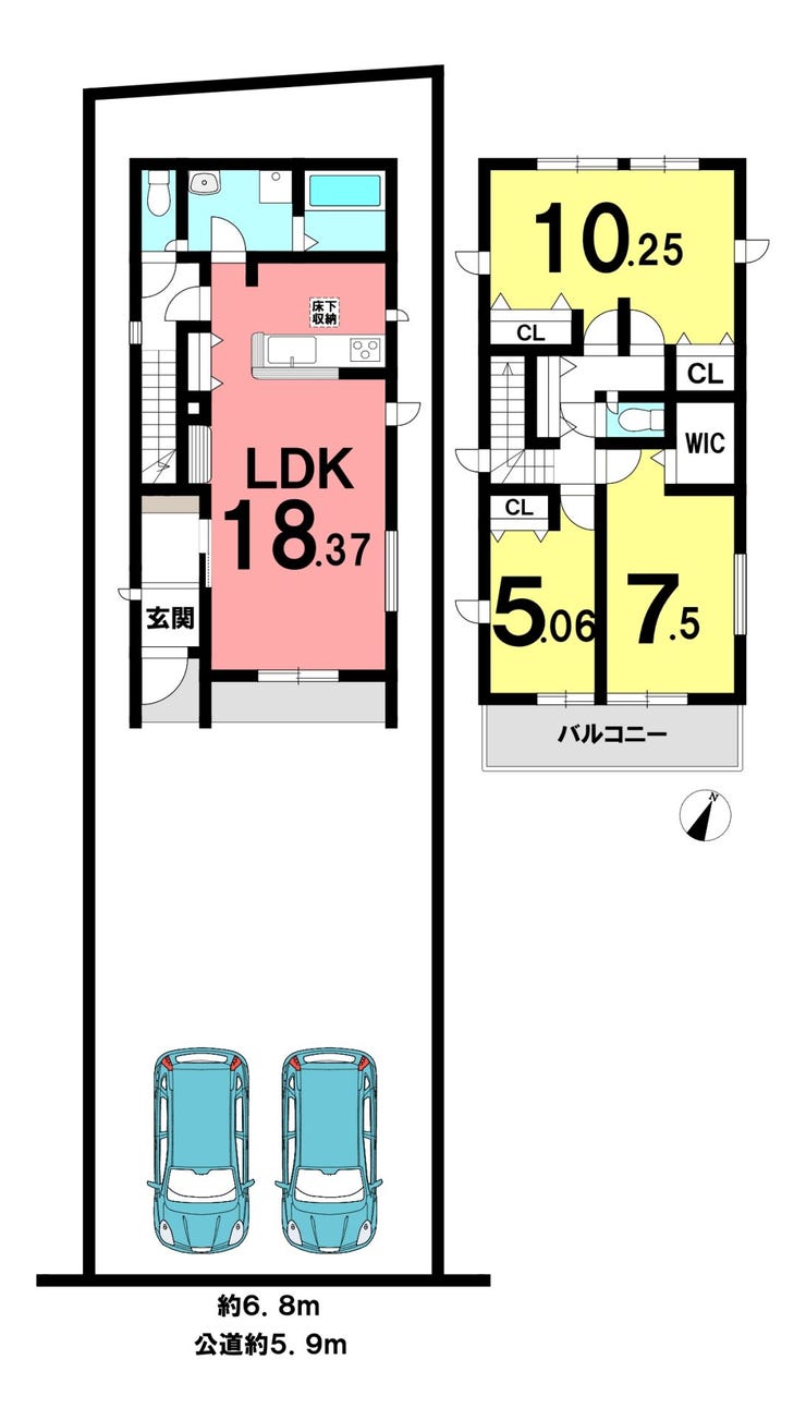 | 土地面積 | 136.42㎡(41.26坪) | 接道 | 南東側(公道)幅 約5.9m 間口 約6.86m |