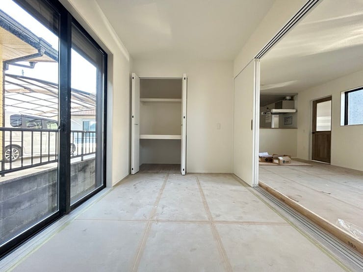 リビングにつながる洋室くつろぎ空間が魅力。2階にはWICも備えており、季節物や家族の荷物もすっきり。