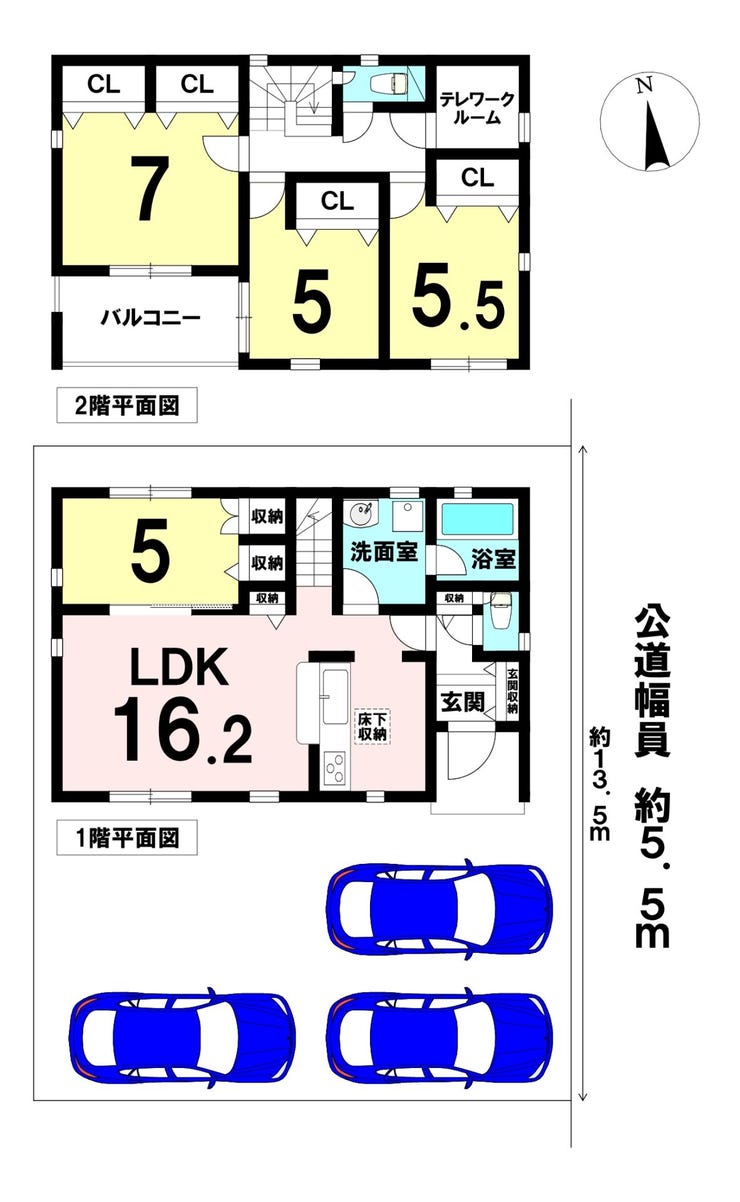 | 土地面積 | 147.91㎡(44.74坪) | 接道 | 東側(公道)幅 約5.5m 間口 約13.50m |