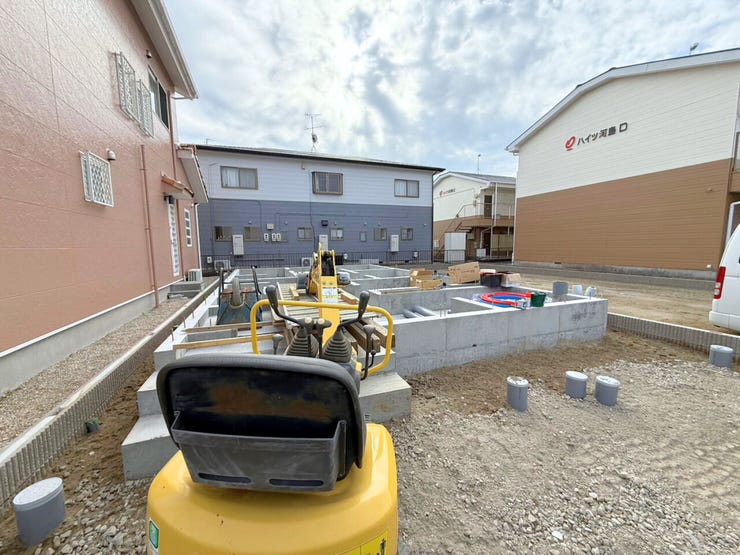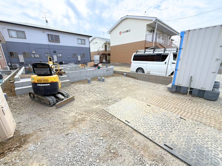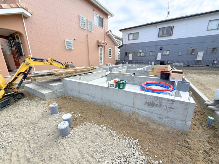 基礎工事中♪現地確認をご希望の際はお問い合わせください!【建築士が在籍しておりますので建築目線でのアドバイス付き♪なお、ご入居前の収納棚・カーポート・コンセント増設などの総合相談も承っております♪】