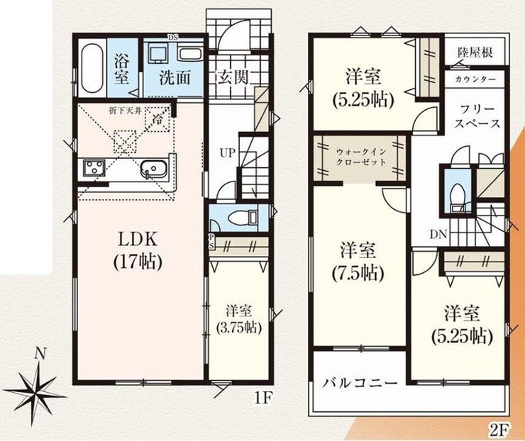 ■駐車スペース2台分■対面式キッチン■カウンター付きフリースペース■主寝室にウォークインクローゼット