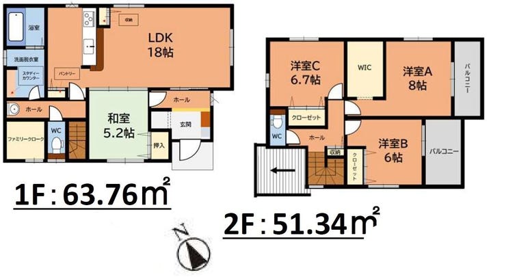 ◎1階にファミリークローク ◎パントリーやWIC収納充実♪ ◎バルコニー2カ所