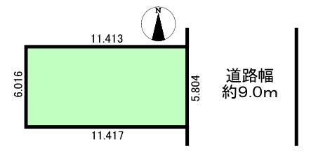 | 土地面積 | 公67.45㎡(20.40坪) | 接道 | 東側(公道)幅 約9.0m 間口 約5.80m |