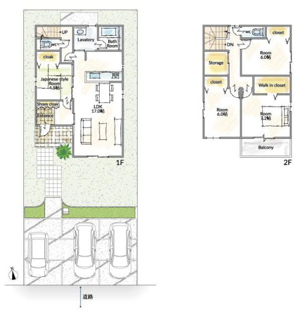 | 建物面積 | 公106.84㎡ | 駐車場 | あり 普通:2台 軽:1台 |