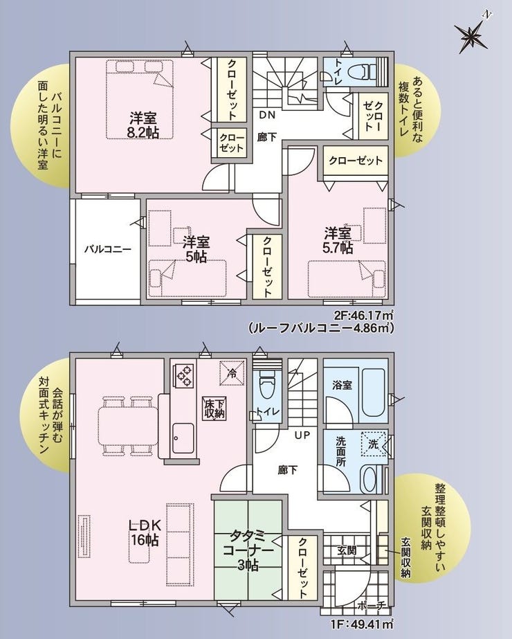 | 主要採光 | 南向 | バルコニー | 南向4.86㎡ |