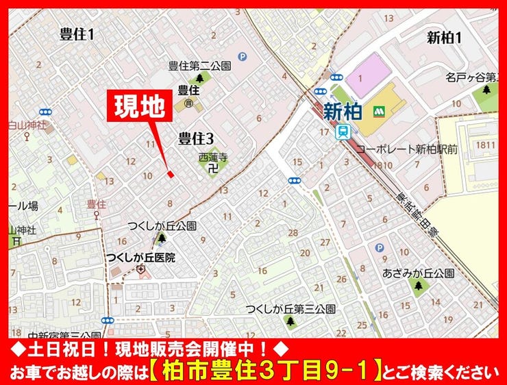 ■□現地販売会開催中!□■ ご案内の際は【0800-800-7935】までお気軽にご連絡ください! まずは資料をという方は、【資料請求・お問合せ】をクリック! ご希望の場所まで、無料送迎も行っています! お問い合わせお待ちしております! 【 柏市豊住3丁目145番 】 ◆毎週土・…