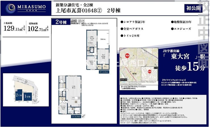 【ミラスモシリーズ】 上尾市大字瓦葺 新築戸建 2号棟一戸建て | 物件情報
