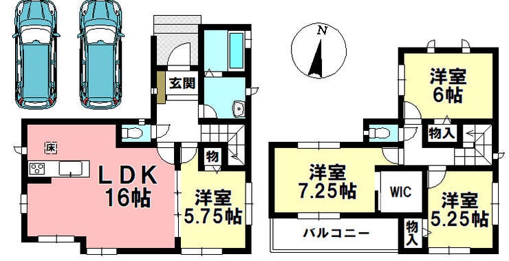 | 建物面積 | 実95.66㎡ | 駐車場 | あり 普通:2台 |