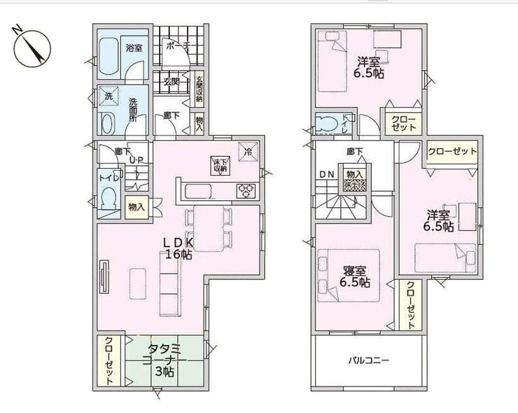 | 備考 | ■リビングに3帖タタミコーナー □浄水栓つきシステムキッチン □温水洗浄便座 □浴室乾燥機 □床下収納,ディンプルキー,モニター付きインターホン,火災警報器等設置済,セットバック |