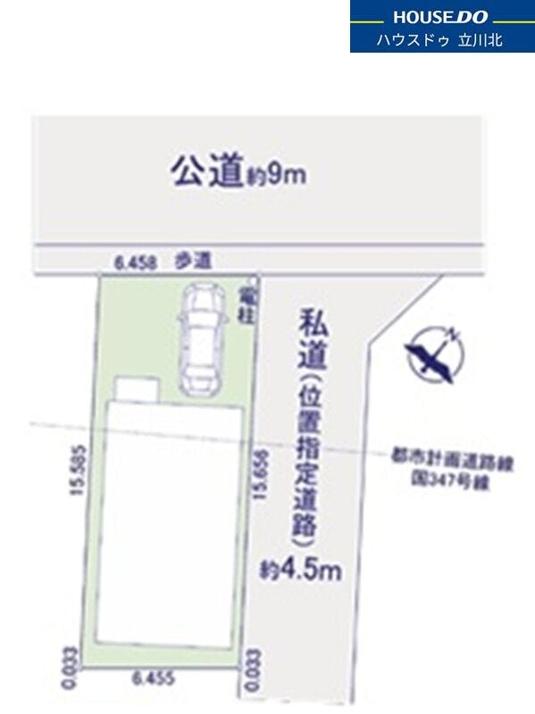 | 土地面積 | 公100.7㎡(30.46坪) | 接道 | 北側(公道)幅 約9.0m 東側(私道)幅 約4.5m |
