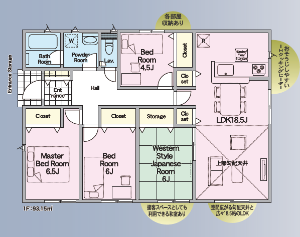 | 建物面積 | 93.15㎡ | 駐車場 | あり 普通:4台 |