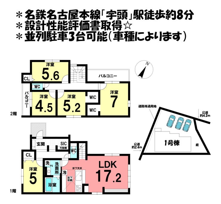 ■設計性能評価取得■耐震等級3■並列駐車3台可■名鉄名古屋本線「宇頭」駅徒歩約8分
