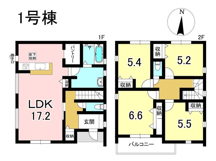 コンビニまで徒歩2分!山手幼稚園まで徒歩7分!全居室収納・パントリー付!南側が道路に面し陽当たり良好