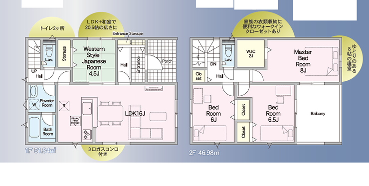 室内は、8帖もの広さを誇る主寝室など、ゆとりを感じる間取りが魅力。